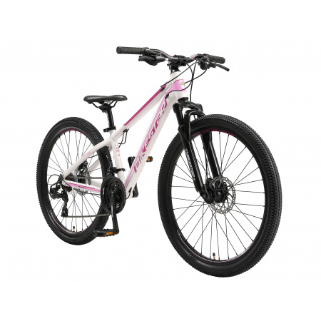 BIKESTAR Alu Mountainbike 26 Zoll | Hartail Sport MTB 13 Zoll Rahmen Scheibenbremse Federgabel | Weiß Pink